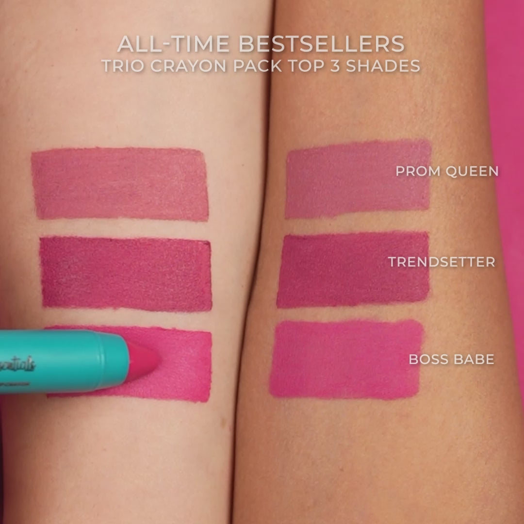 brings together our 3 most-loved creamy matte lip crayons—perfect for every skin tone, every occasion, and every mood.