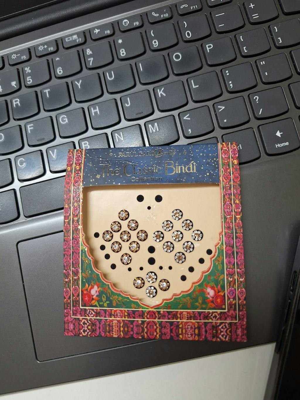 If you plan to reuse the bindi, place it back on its original spot in the booklet to preserve its shape and stickiness.