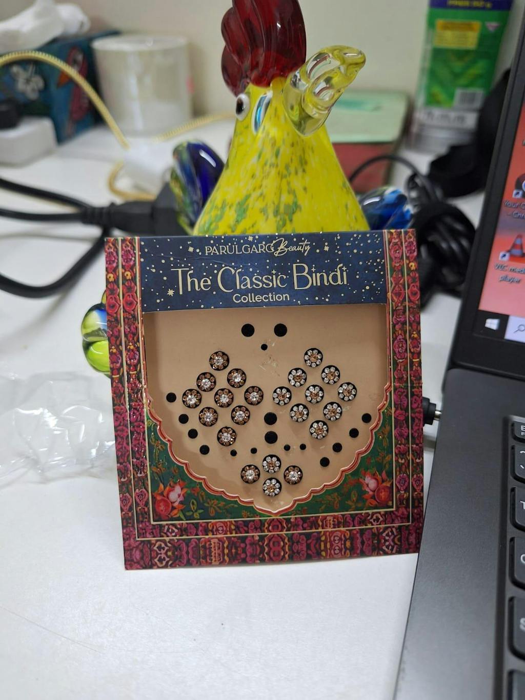 Some bindis may be reused if handled carefully. After use, gently place the bindi back onto its original spot on the patta to help maintain its shape and adhesive. Reusability may vary depending on skin type, wear duration, and handling.