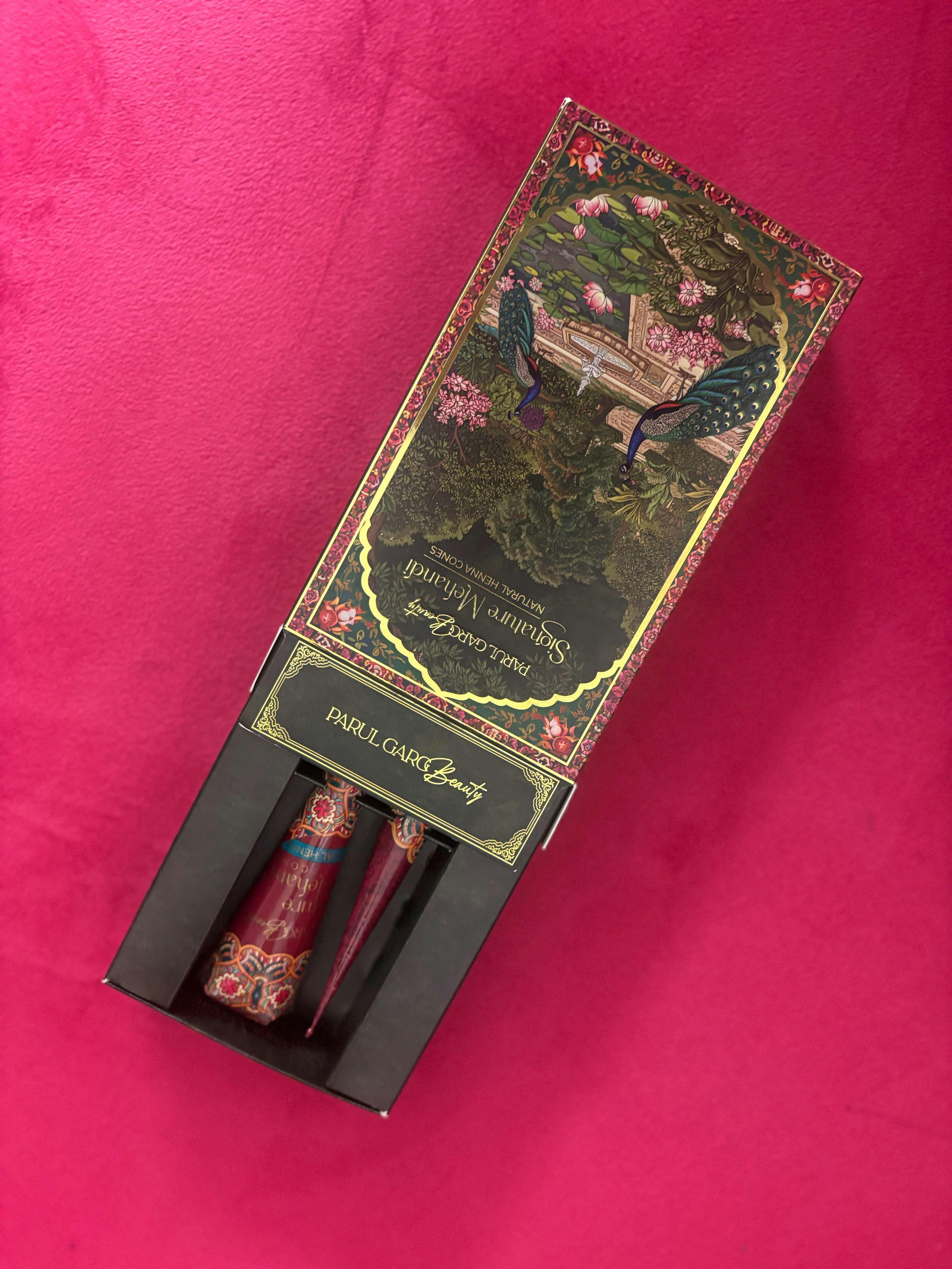 Parul Garg Beauty Signature Mehandi Pack brings you the age-old art of henna in a modern, safe, and natural way. Each box contains
